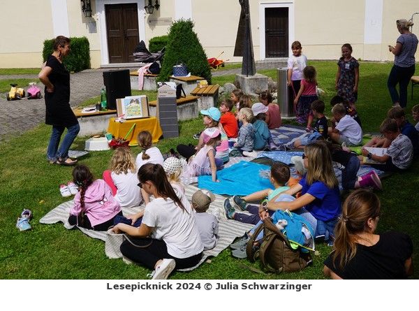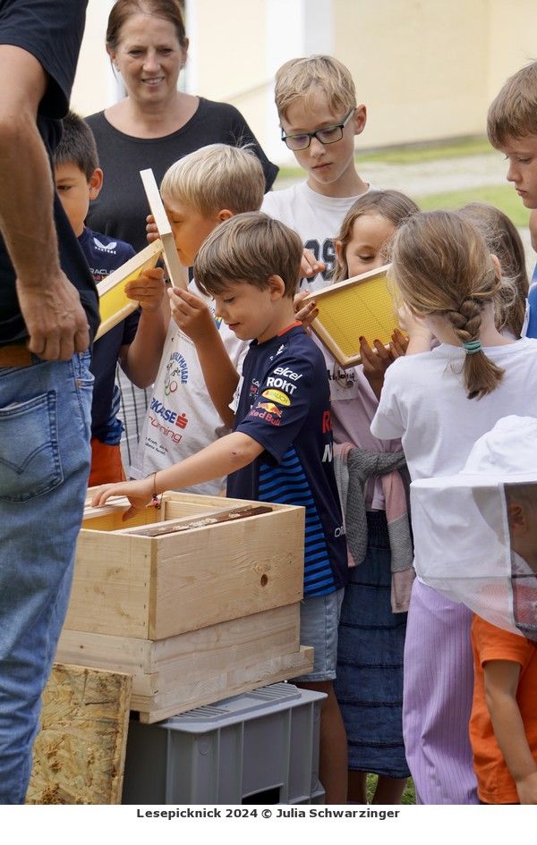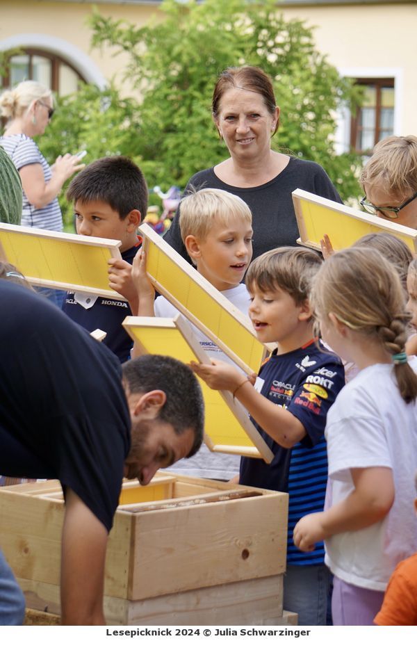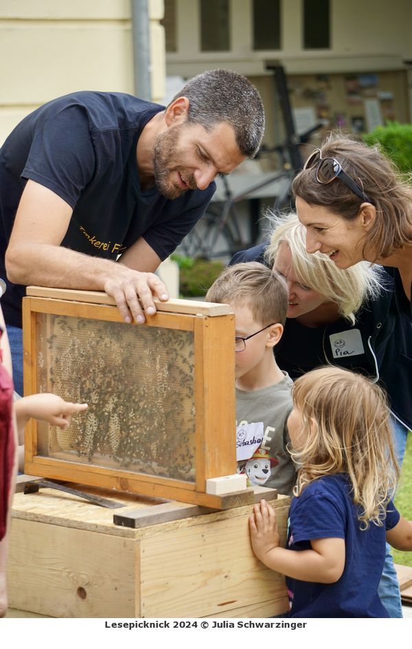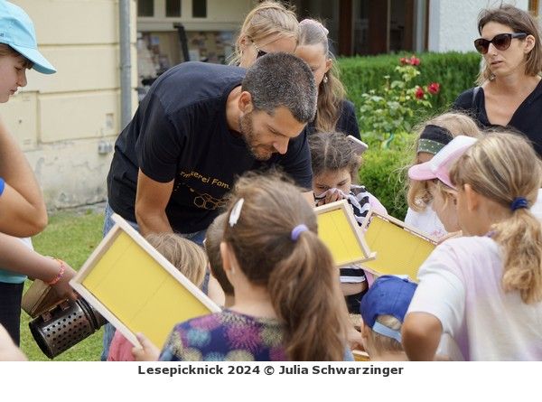 Der Paudorfer Kindersommer startete am 4. Juli 2024 mit einem spannenden Lesepicknick der Öffentlichen Bücherei Frau Ava. Bei herrlichem Wetter versammelten sich über 40 Kinder mit ihren Familien im Hellerhof, um an einer Mitmachlesung und einer faszinierenden Bienenvorführung teilzunehmen.
