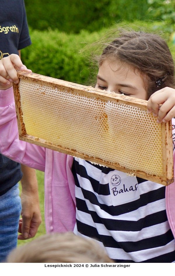 Passend dazu hat Familie Wögrath die jungen Teilnehmer mit echten Bienenwaben und spannenden Infos über die Imkerei begeistert. Die Kinder konnten sehen, wie Honig entsteht, und verschiedene Honigsorten verkosten.